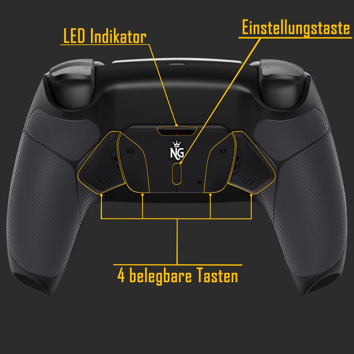 Mit vier zusätzlichen Tasten auf der Rückseite deines PS5 Controllers bist du klar im VORTEIL. Konfiguriere die Paddles frei und halte deine Daumen dauerhaft auf den Sticks – für schnellere Reaktionen und präzisere Spielzüge.